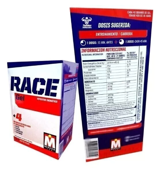 RACE GEL es fuente de carbohidratos de rápida absorción y ha sido adicionado aminoácidos ramificados y con glutamina para apoyar la resistencia en los entrenamientos prolongados.