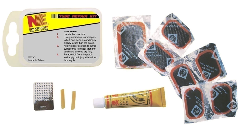 NCLUYE: 1 Solución, 7 parches, gomines y raspador