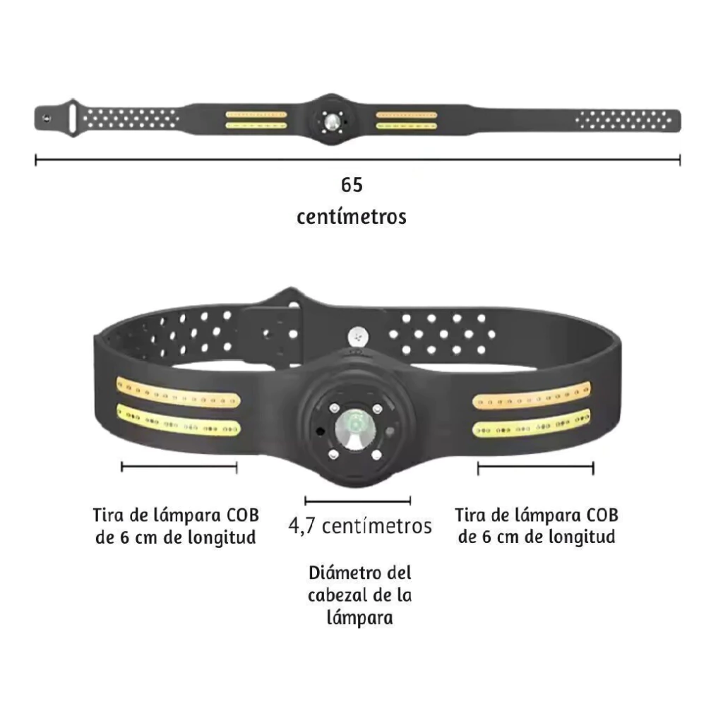 Confeccionada en silicona y ABS, su estructura compacta y resistente a caídas aporta durabilidad y confort, mientras que su diseño impermeable (grado IPX4) asegura un uso confiable bajo condiciones climáticas adversas. Además, incorpora un sensor de movimiento con alcance de hasta 10 metros, que activa la luz automáticamente, facilitando su manejo sin contacto.