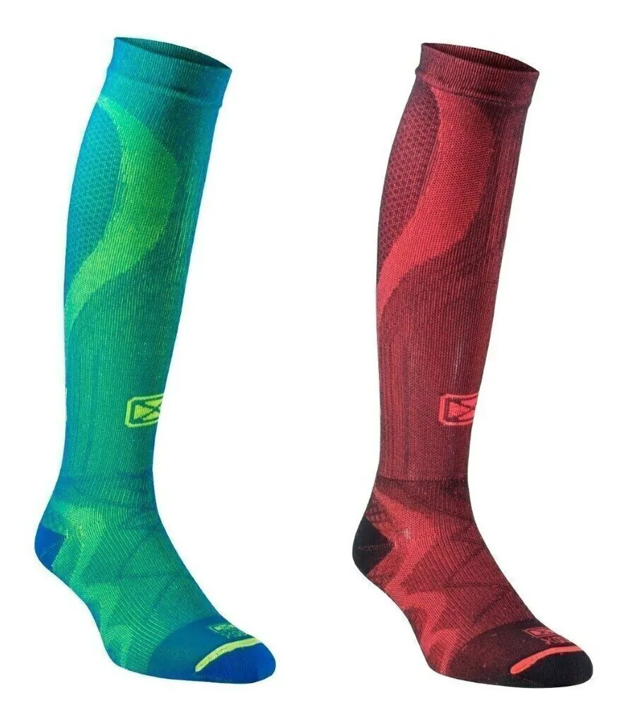Medias de compresión graduada pensadas para el deportista. Desarrolladas para contribuir a la recirculación del sistema sanguíneo y a la contención de los músculos. El agregado de puntos de contacto permite la relajación de las tensiones propias del pie. Pie con media interna de microfibra incorporada que expulsa la humedad hacia el exterior y reduce el rozamiento del pie con el calzado para evitar la aparición de ampollas. Capa externa de compresión graduada que se extiende desde la punta de los dedos hasta debajo de la rodilla de forma continua. La compresión inicia detras de los dedos para mayor libertad de los mismos, tal como esta indicado en el concepto de compresión graduada. Remallado plano, talón y puntera reforzados.