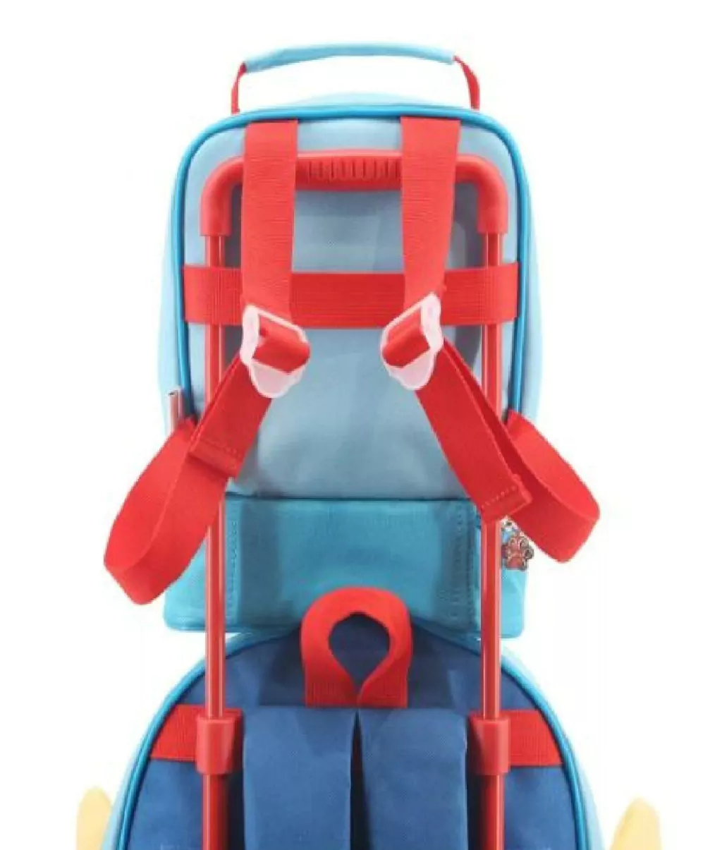 Cuenta con dos tiras de espalda y una tira por detrás para que la pongan en sus mochilas con carro y la lleven sin problemas.
