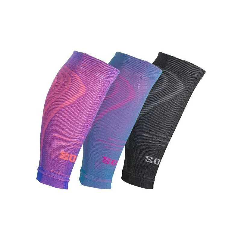 Se extiende desde el tobillo hasta la parte inferior de la rodilla. Pantorrilleras de compresión graduada pensadas para el deportista. Desarrolladas para contribuir a la re-circulación del sistema sanguíneo y a la contención de los músculos. El agregado de puntos de contacto permite la relajación de las tensiones propias del pie. Permiten que el usuario las combine con medias específicas como soquetes para running, por ejemplo.